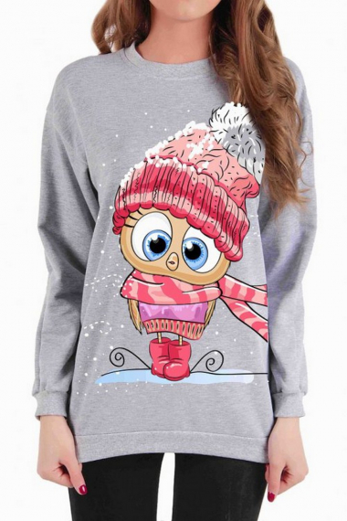 Фото товара 21481, серая женская толстовка с новогодним принтом